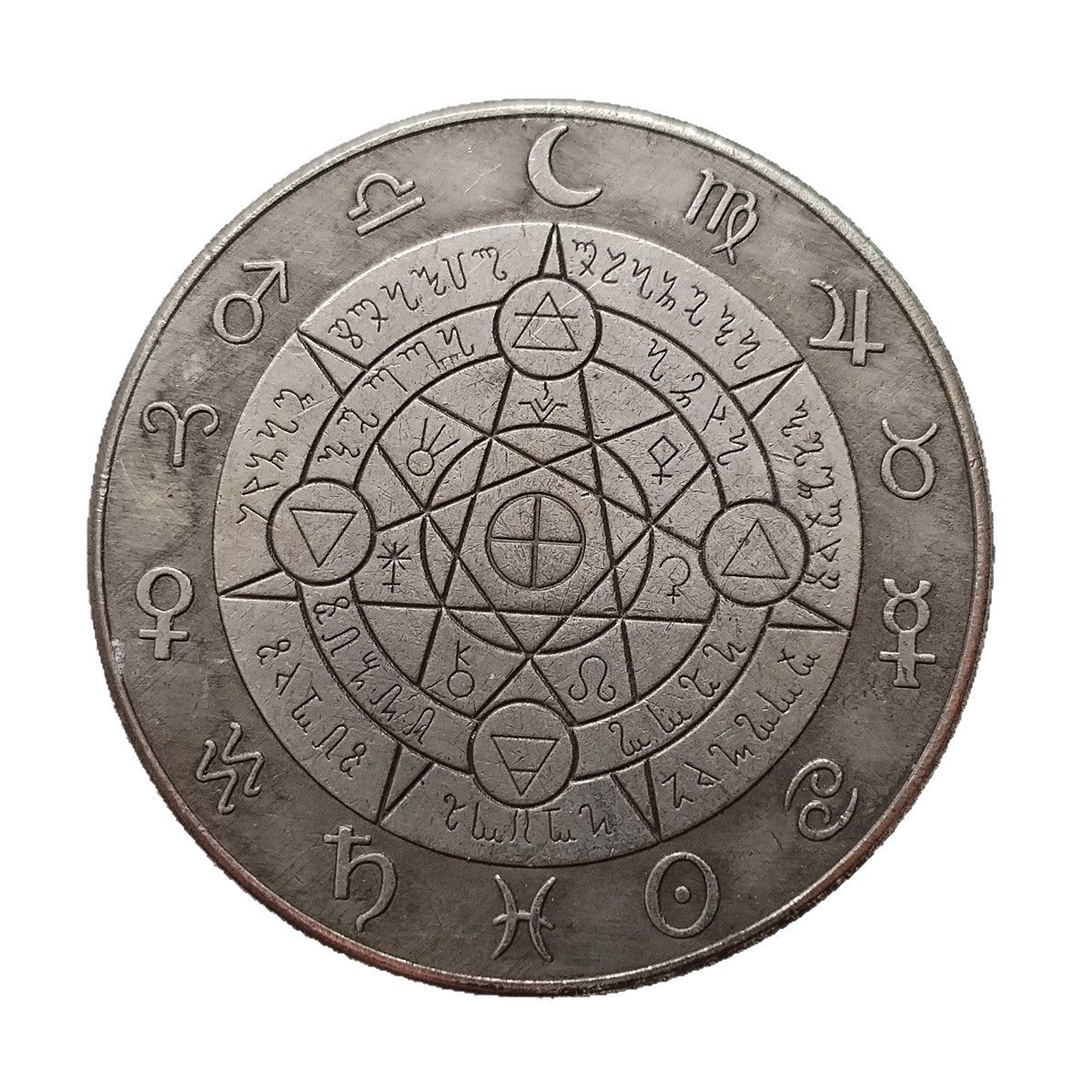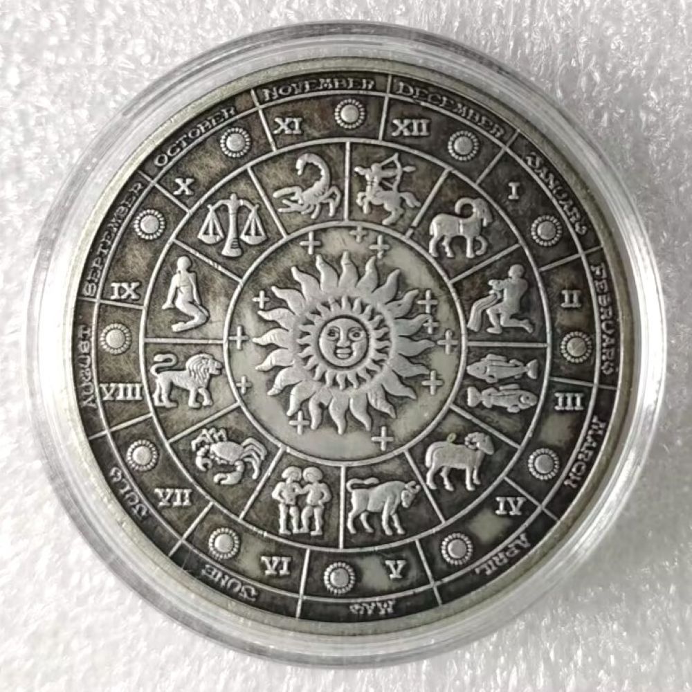 ヨーロッパとアメリカの十二星座記念メダル、太陽神、月、スマイリーフェイス、真鍮、銀メッキ、友人への誕生日プレゼントの丸い箱入り