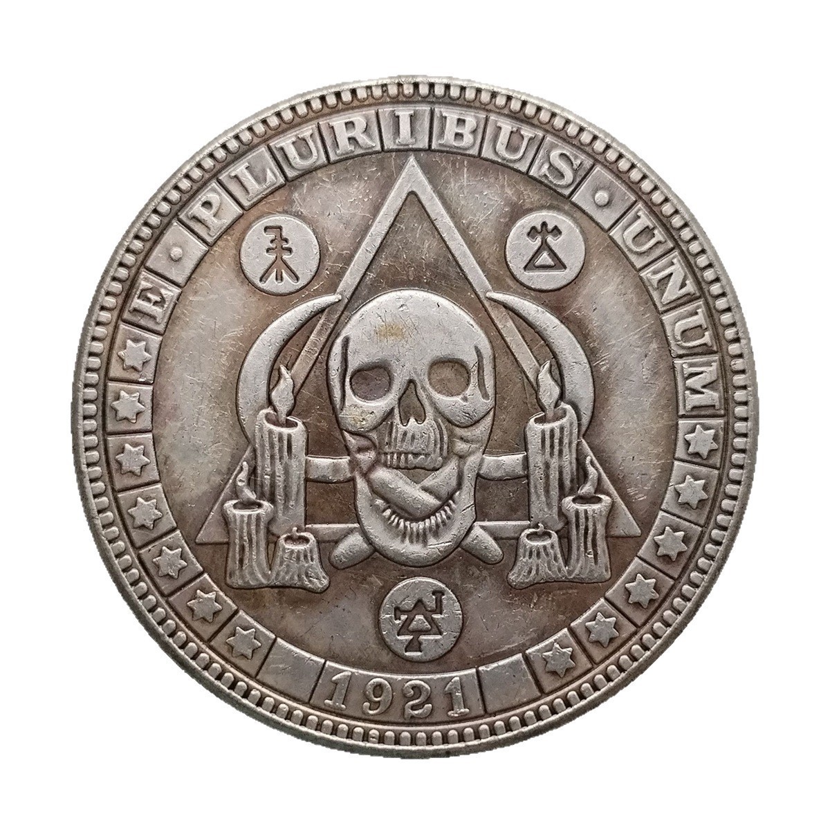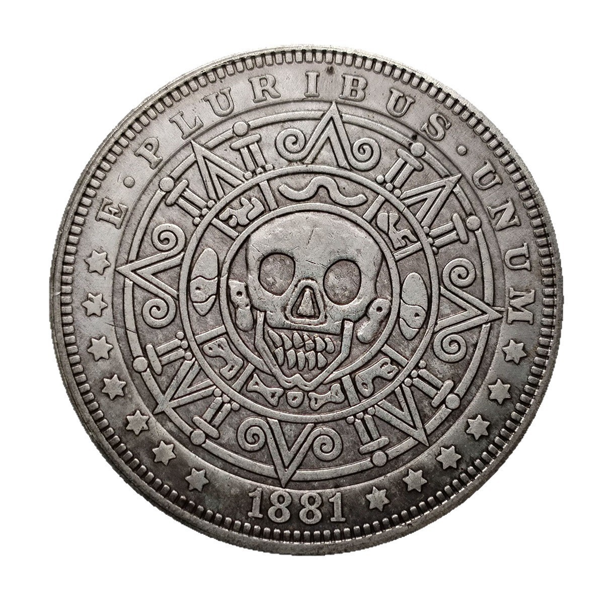 HB33 ラウンドボックスアンティーク工芸品ワンダラーコインスカルアメリカンシルバーコイン真鍮銀メッキ素材