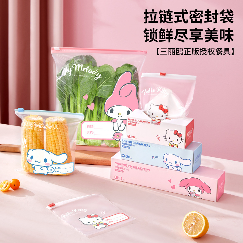 サンリオ食品級密封袋家庭用厚手自封袋冷蔵庫専用補助食分装袋ファスナー保存袋