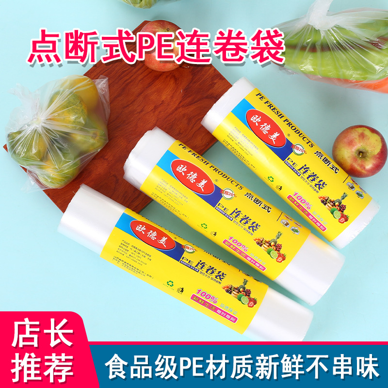 メーカー直販使い捨て点断式果物と野菜の鮮度保持袋家庭食品級pe鮮度保持袋