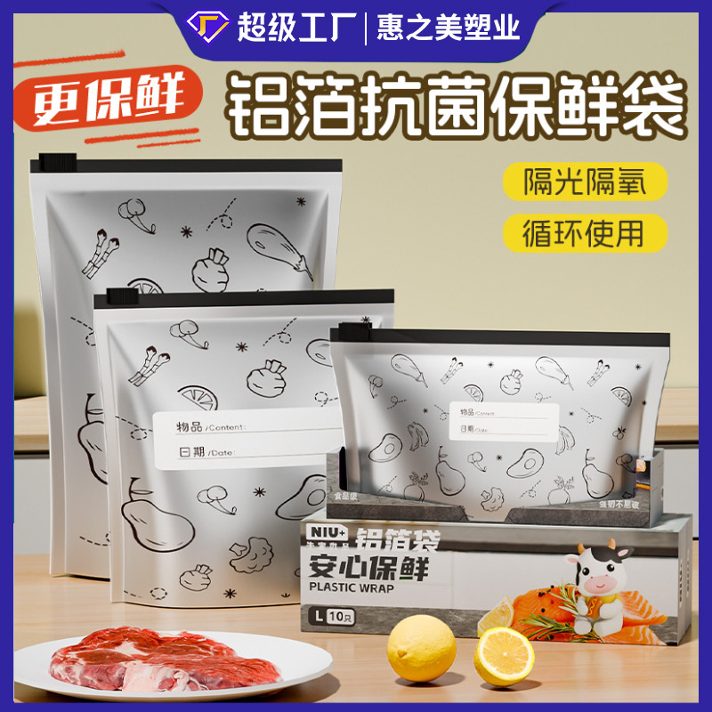 アルミチタン箔食品保存袋増粘家庭用冷蔵庫肉野菜冷凍保存錫箔密封袋ジップロック袋
