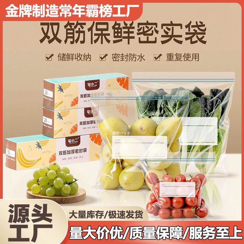 家庭用キッチン保存袋冷蔵庫収納冷凍双筋密封袋自封厚手食品保存袋