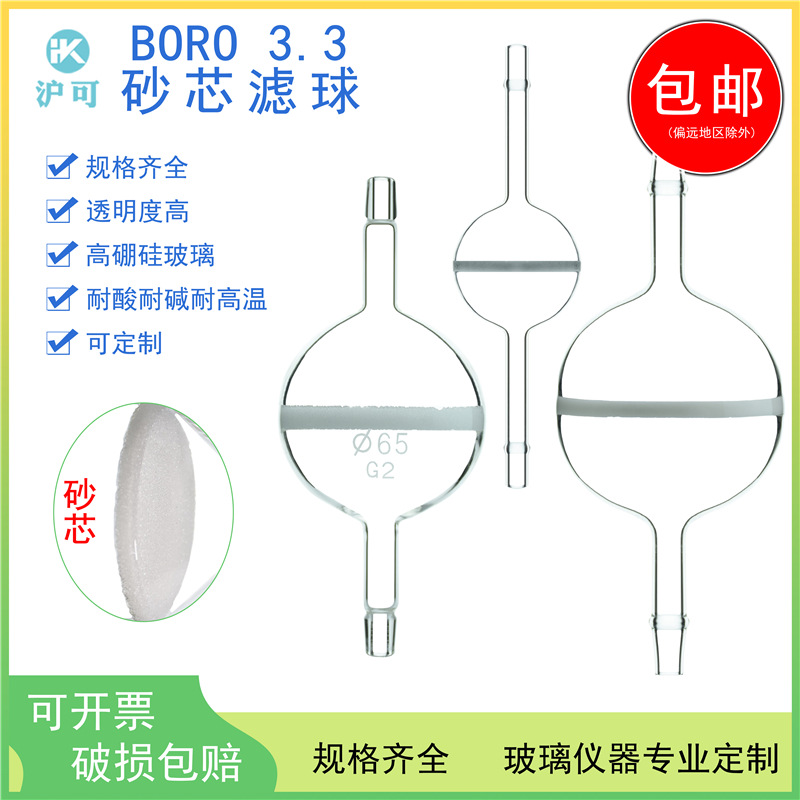 包郵便実験室ガラス砂芯フィルタボール30/65/100mm球形洗気フィルタG1/2/3/4/5