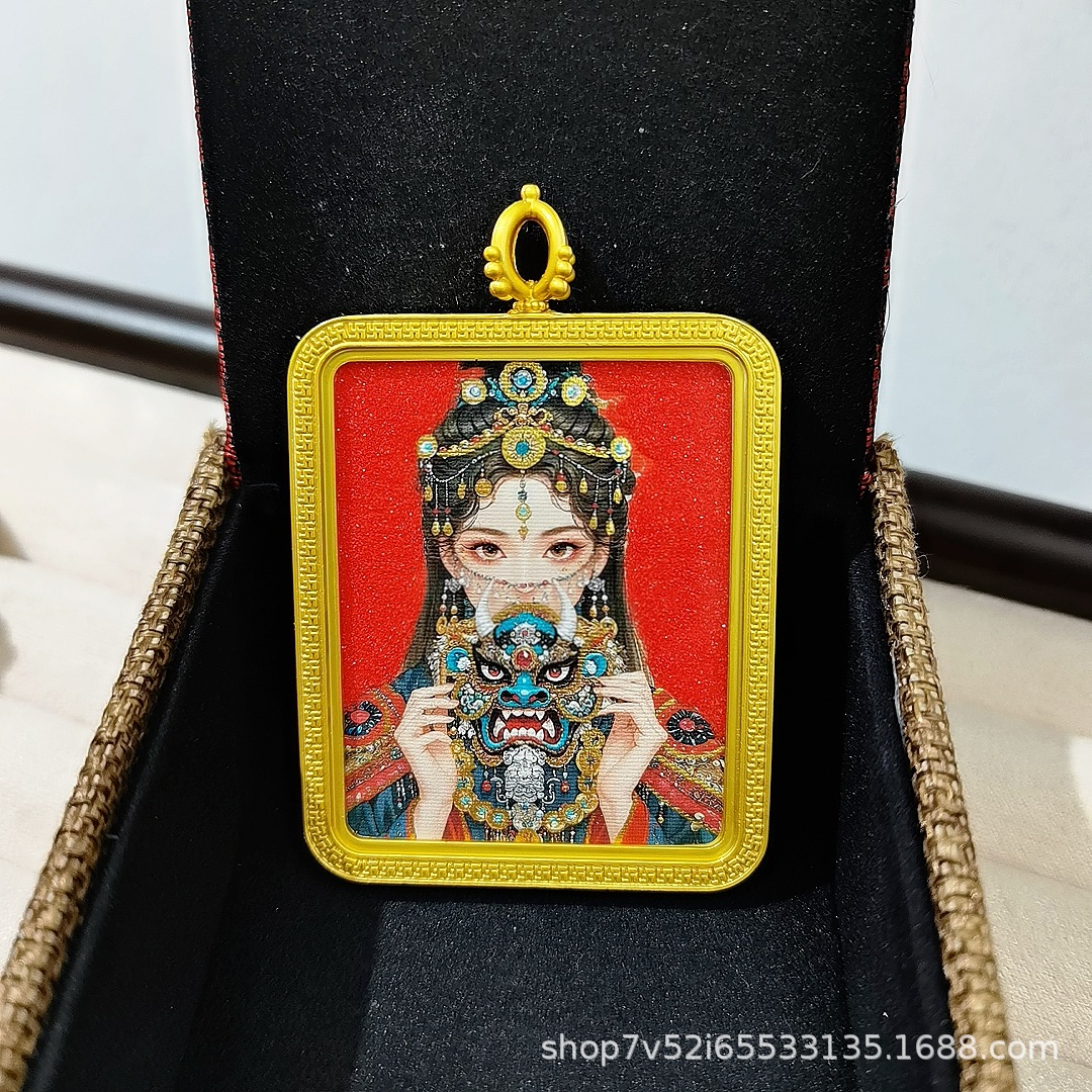 民族風チベット式ザキラム唐カードペンダント前世今生女財神毛衣チェーン半手描きガウ箱