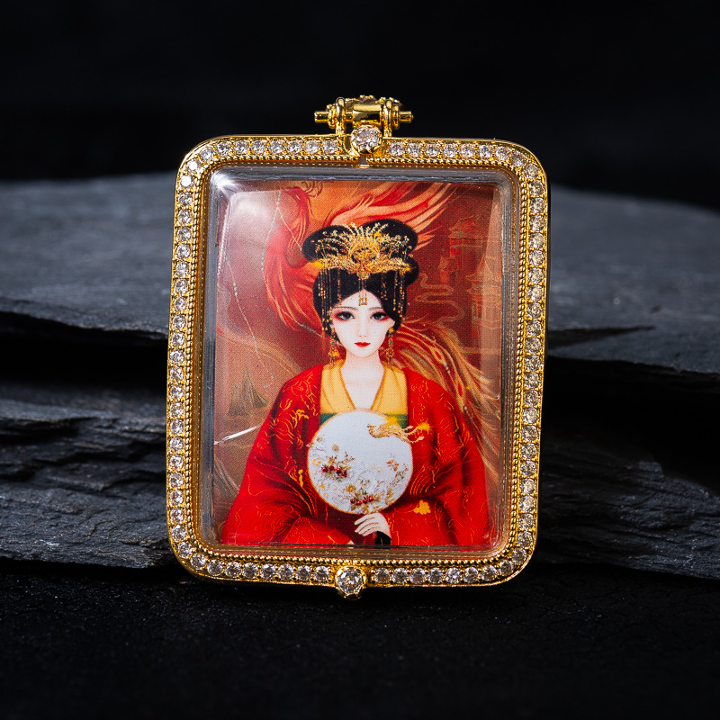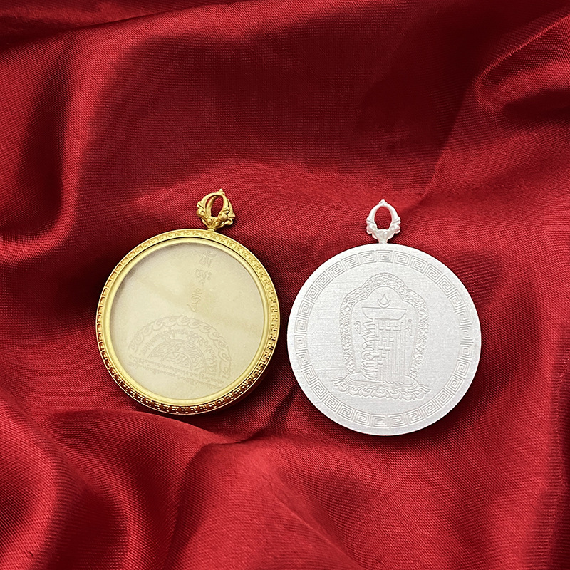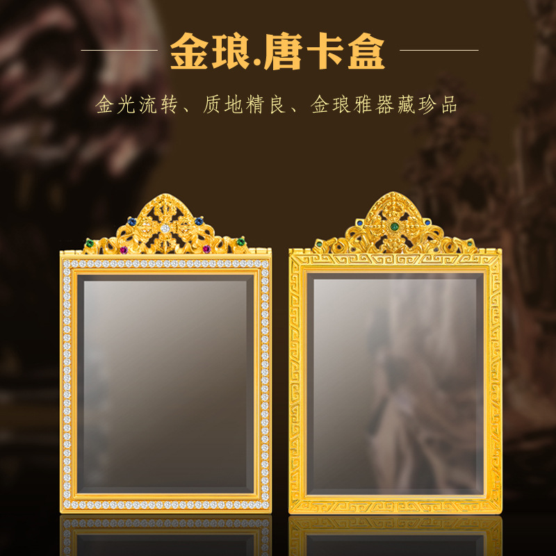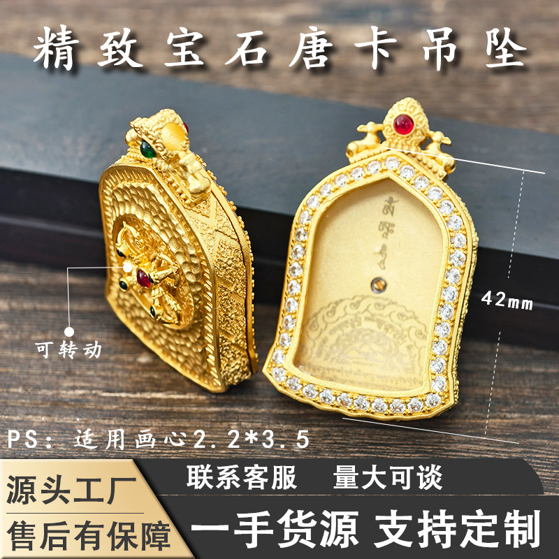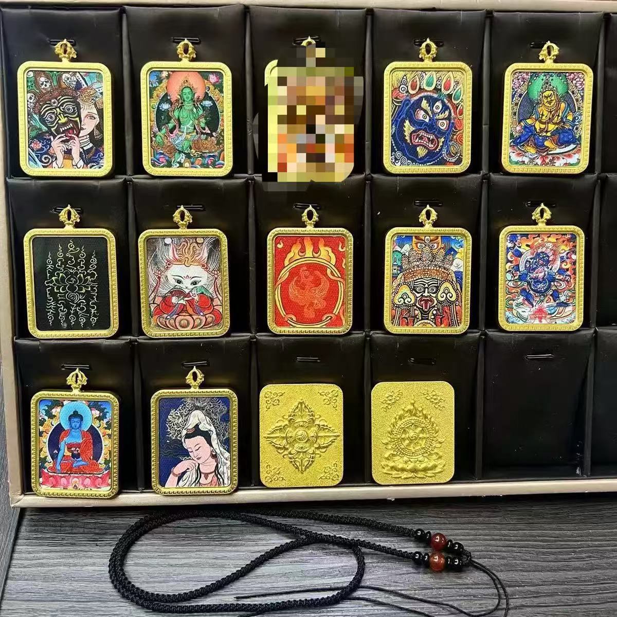 ミニチタン鋼チベット式タンカ ネパール製 非手描き立体ガウボックス 黄財扎基ラムペンダント カチャボックス