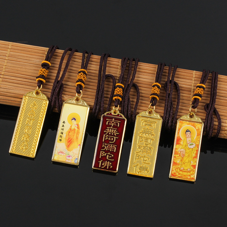 仏牌金色南無阿弥陀仏寺ストラップ両面仏牌ペンダント寺院信者ストラップ卸売り