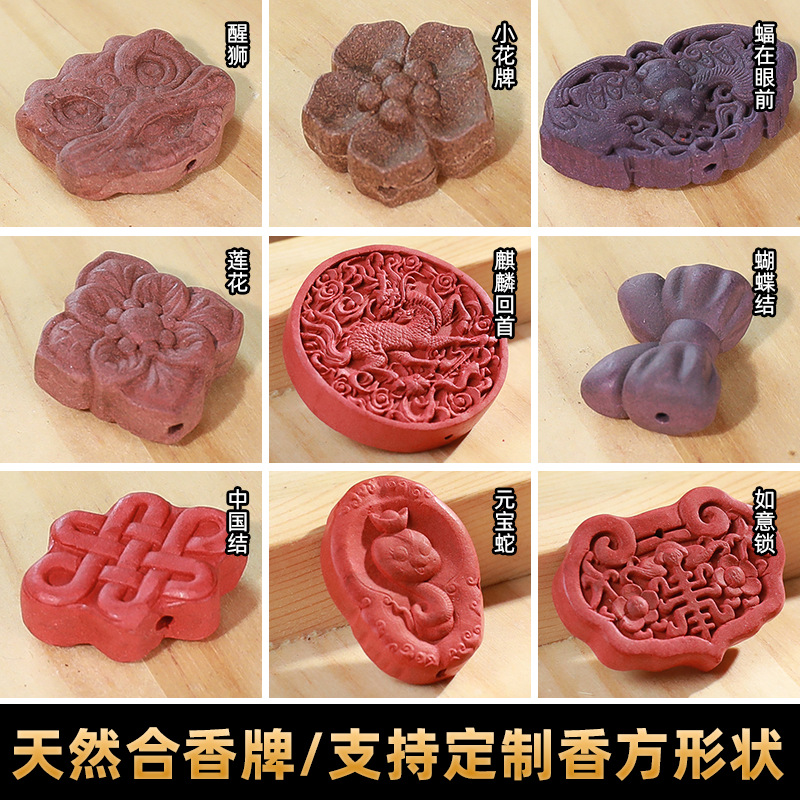 古法合香牌平安扣梅花手作りDIYビーズ付き車吊り飾り天然香材既製品卸売香牌