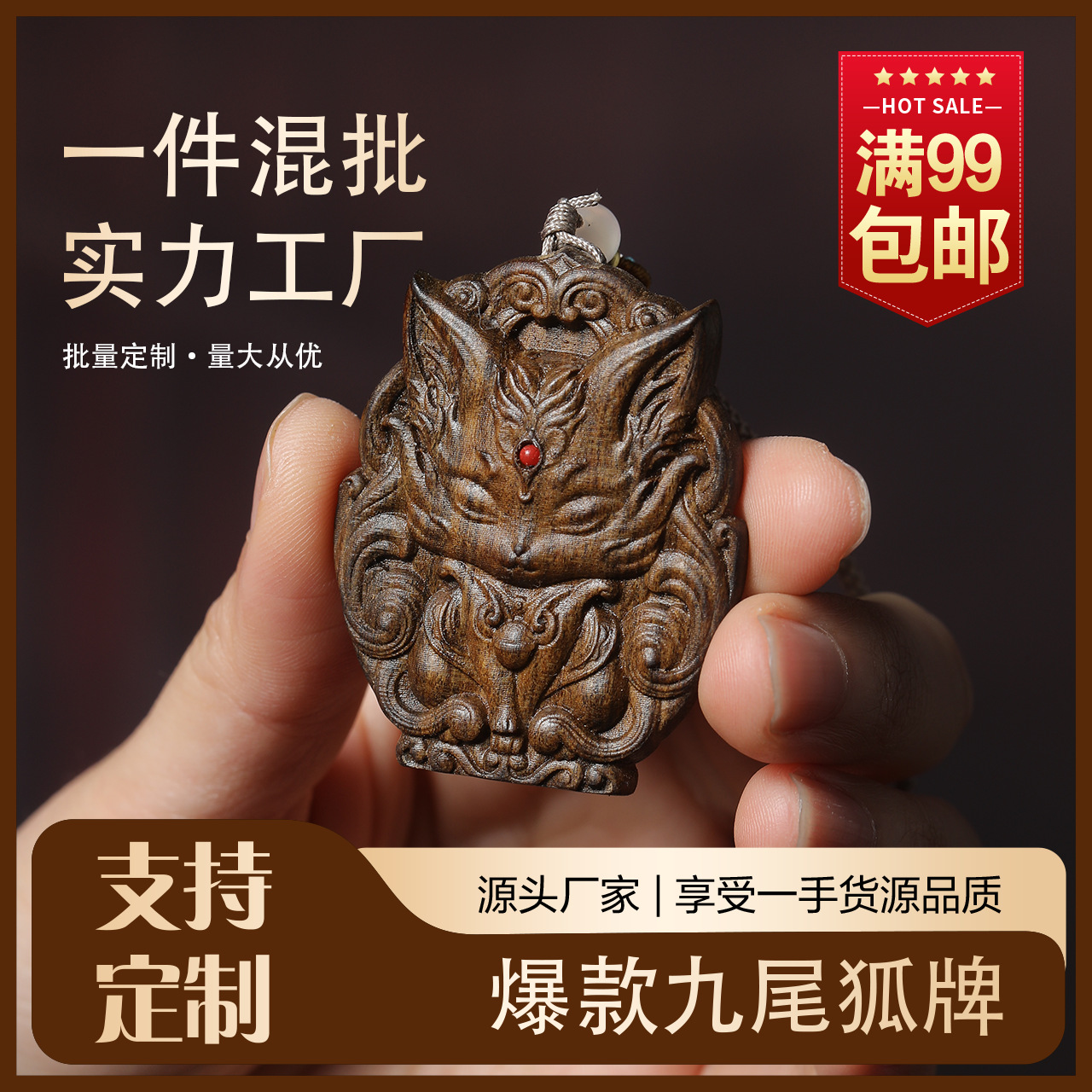 ダラ乾沈香木爆金九尾狐ブランド木質随行ハンドル車載装飾彫刻工芸品アクセサリー