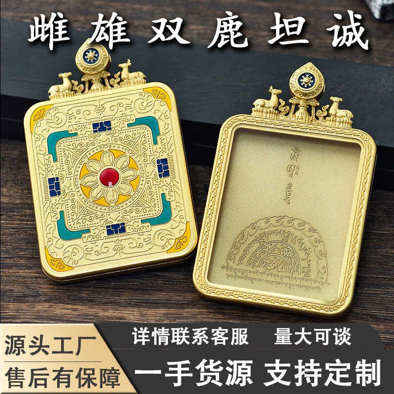 チベット式チタン鋼エナメル誠双鹿聴経唐卡箱ガウ箱ペンダント金色仏牌ガラスモザイク卸売り