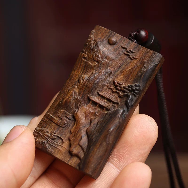 天然沈香木雕山水胜境ネックレスペンダント无事ブランドハンドル文字游び男女工芸品