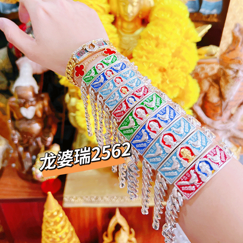 タイ仏牌龍婆瑞索麗緑索麗藍素銀2557年純銀ブレスレット龍婆瑞ブレスレット