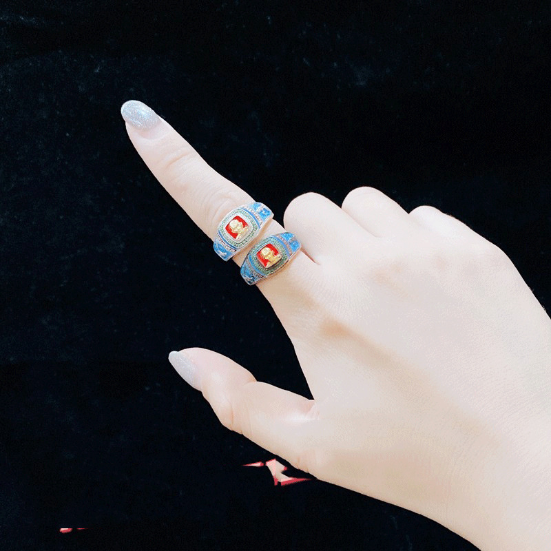 タイ仏牌万仏の王崇迪純銀法戒開口指輪水色青限定