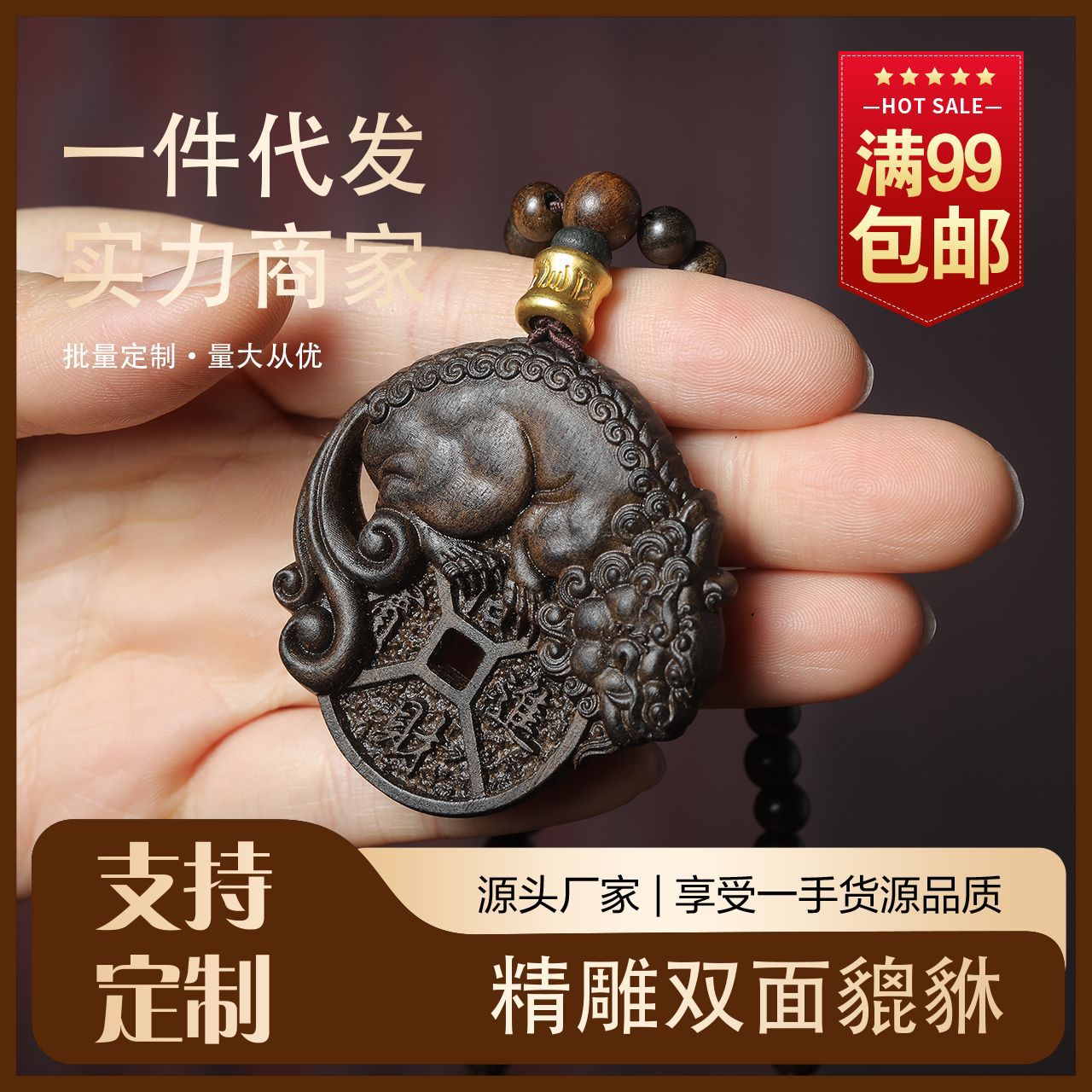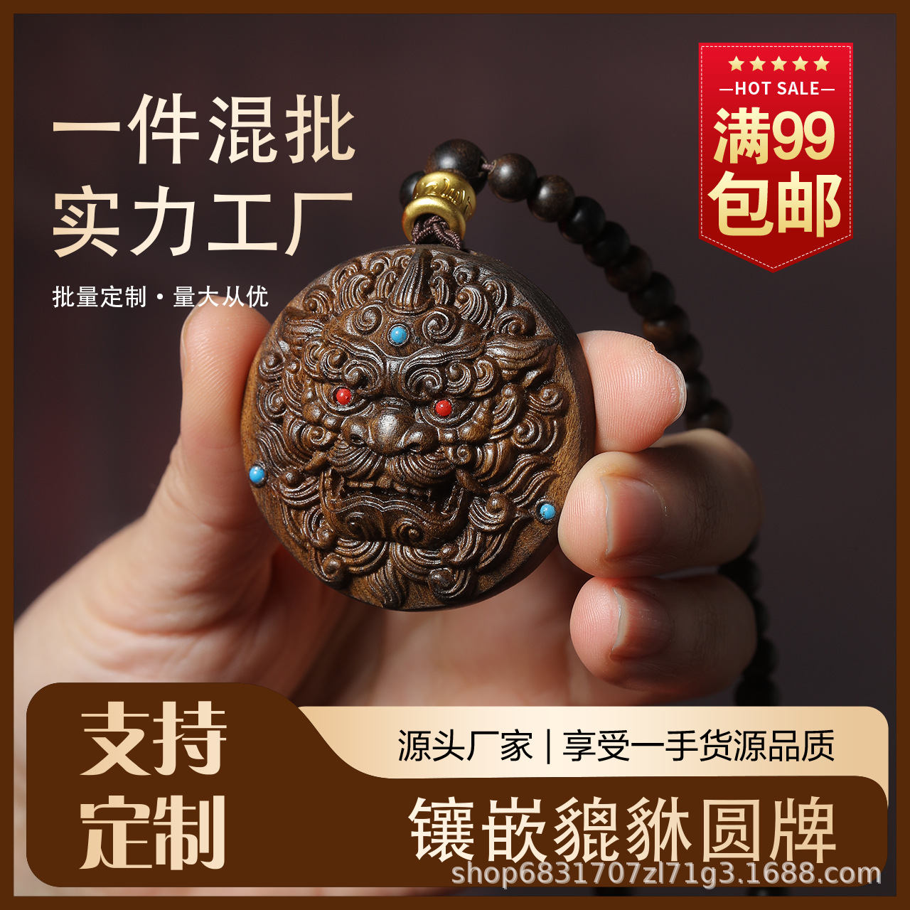 工場直売沈香木彫り両面ペンダントブレスレット精彫手作り招財進宝車掛飾品セイコー