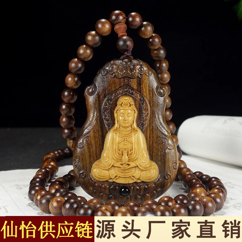 卸売沈香ブランドスタンディング観音ブランドカーペンダントカーペンダント手作り彫刻工芸品ジュエリー