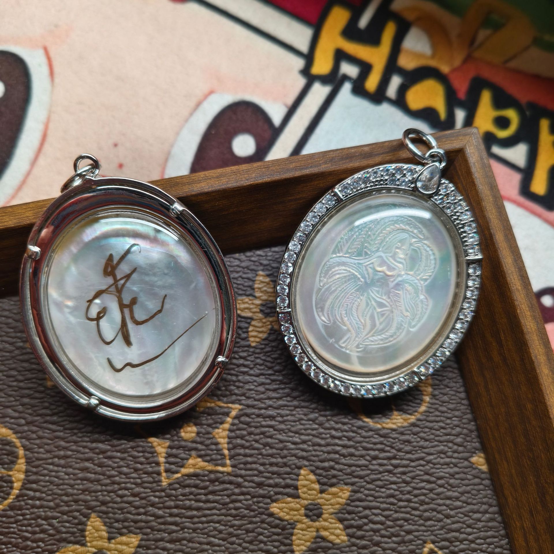 タイの仏牌の外殻は殻の中の型の小さい型の大きい型の楕円のエナメルの彩色の外殻の仏牌のチェーンをくぐります。