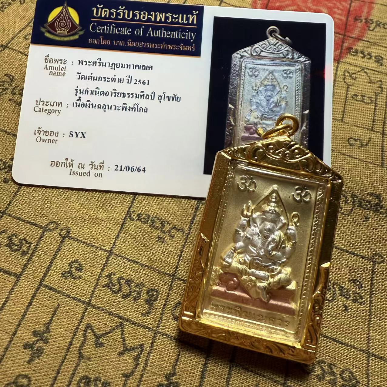 タイブランド2549エナメルシェル金メッキ正面にラフテープカード付きタイ仏教ブランドペンダント