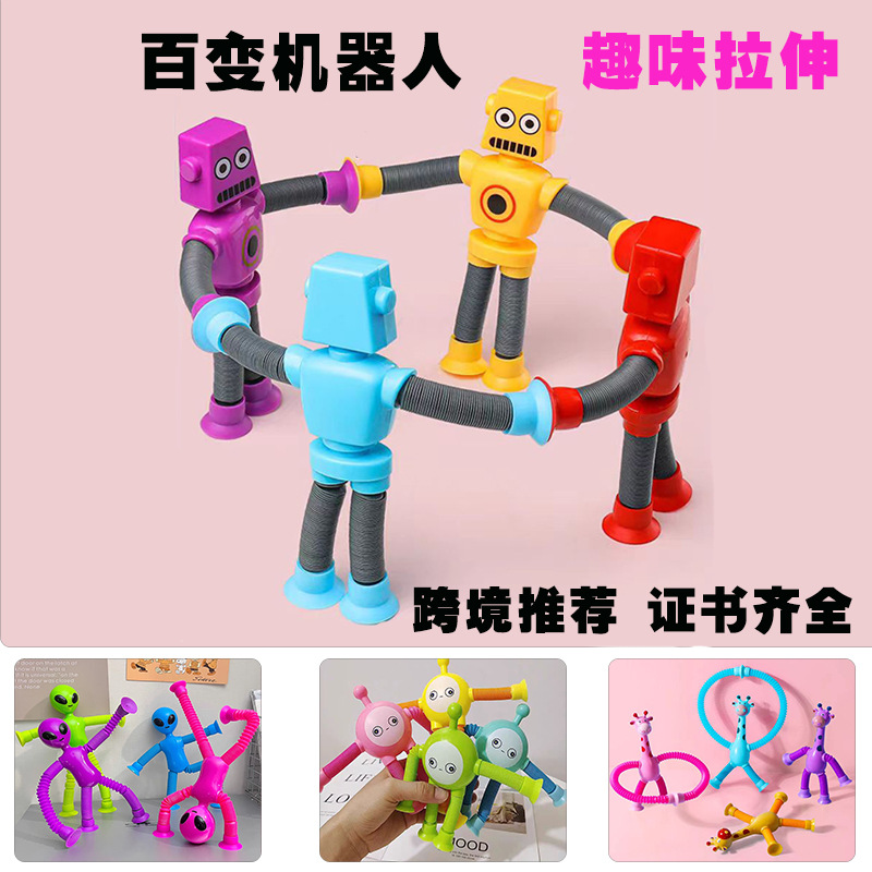 クロスボーダー百変伸縮吸盤ロボットストレッチキリン解凍玩具発光百変造形知育玩具