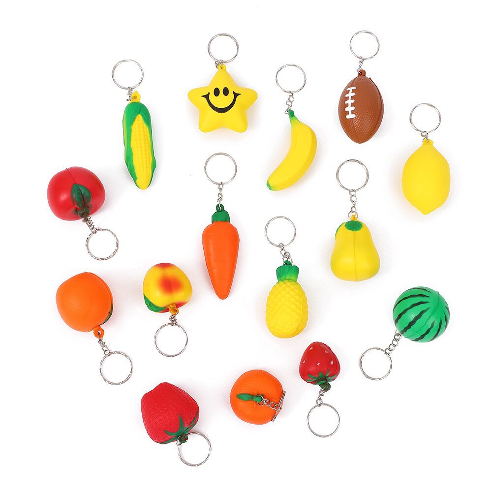 アマゾン爆発PUキーホルダースポンジ発泡笑顔ストレスボール子供減圧発散玩具果物装飾