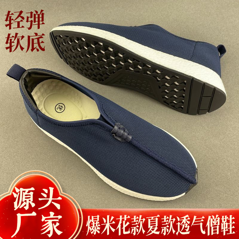 僧靴夏秋男通気性飛織網面出家和尚僧侶靴軟底羅漢靴居靴女子靴