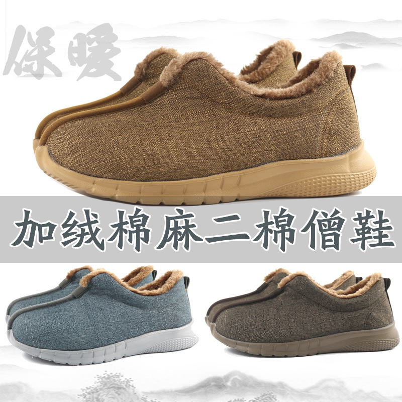 僧靴冬綿靴ベルベット保温厚い底滑り止め低助亜麻僧侶男女出家二綿靴