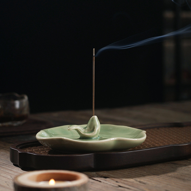 縦型錦鯉香挿し創意青磁線香炉陶磁器香盤香座家居香器禅意香薫置物