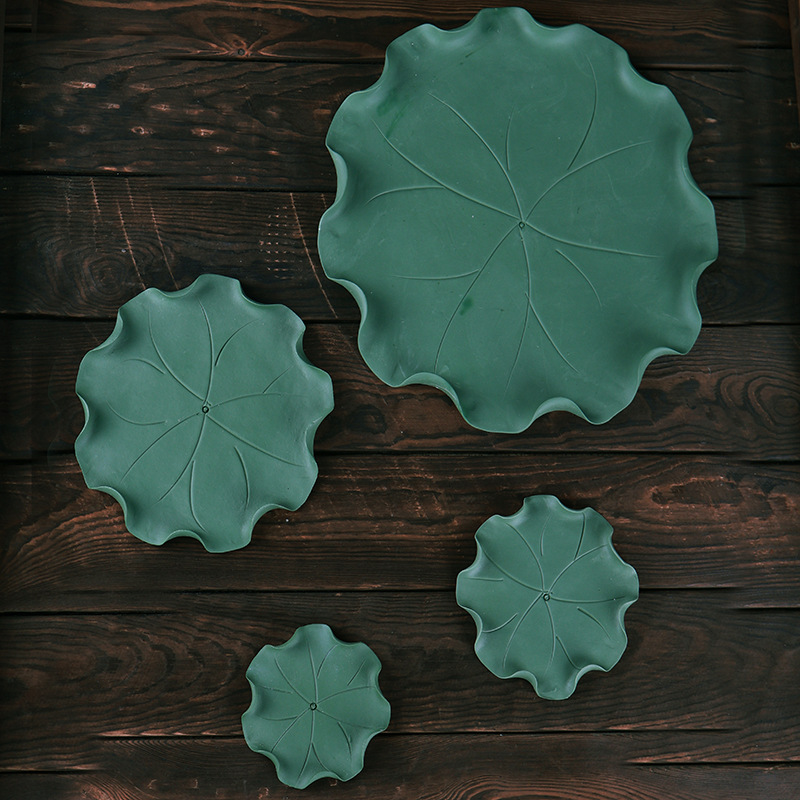 中国式ハスの葉座蓮花トレー手作りハスの葉創意シンプル香器台座陶磁器仏品部品小置物