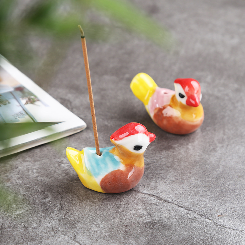 セラミック製オシドリ香立て、ミニクリエイティブ和風線香ホルダー、漫画風小動物、個性的な工芸品の装飾品