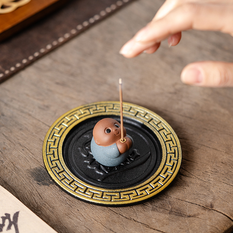 創意紫砂小沙弥線香炉香挿香座家庭用室内香器禅意茶室デスクトップ香薫炉