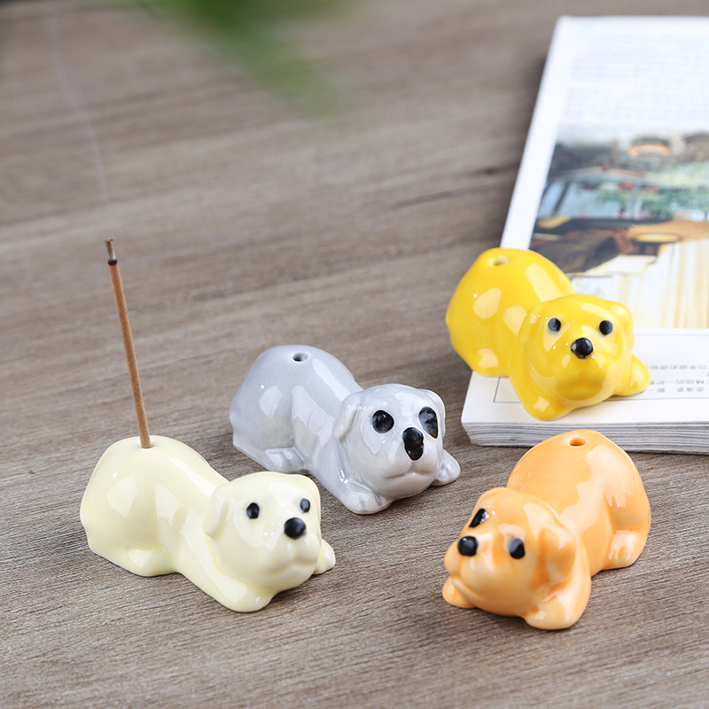 日本式の創意のかわいい動物の陶磁器の線香は家庭用の漫画の子犬のハバゴの犬の柴犬の香器の卸売りに座ります。