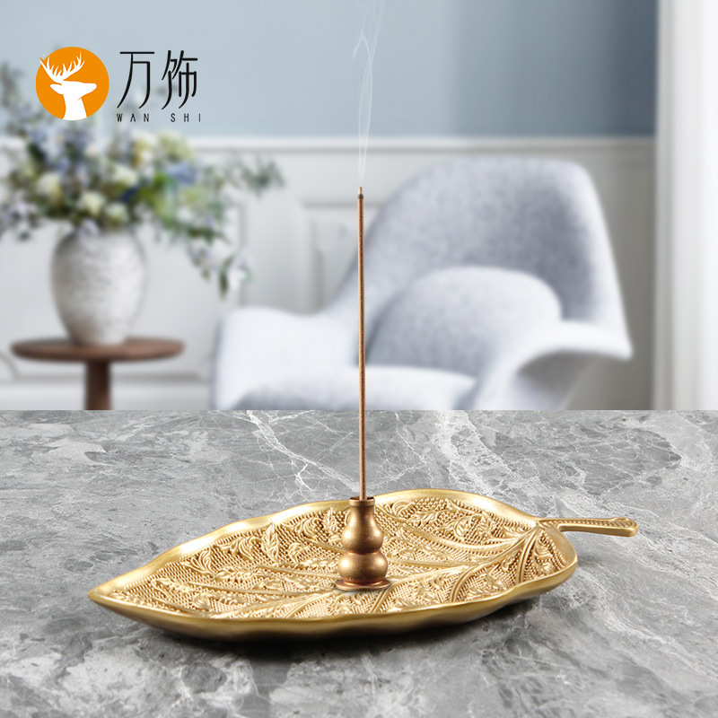 創意的な線香は香を挿して黄銅の木の葉を引っ張って型の線香のストーブの室内の家庭用の薫香の置物の装飾物を挿します。