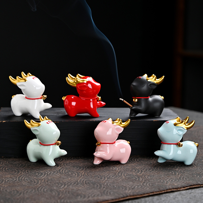 如意復古臥香炉家庭用室内線香炉香箱香挿一鹿金持ち薫香炉模造香薫炉