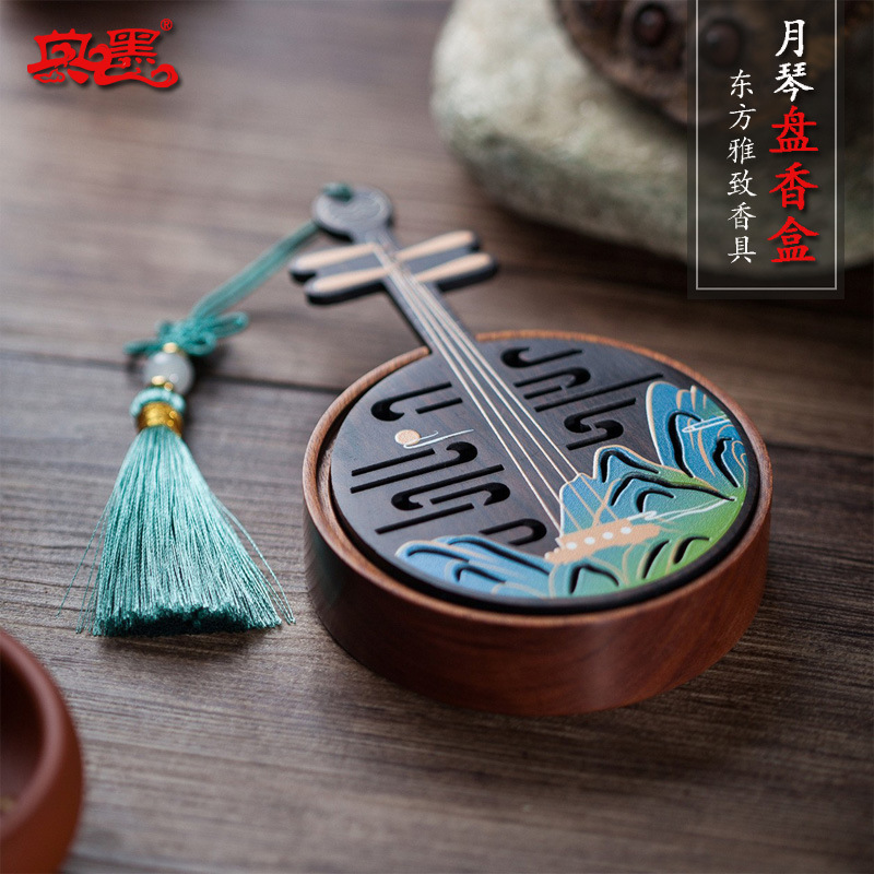 月琴香炉、古典文化香道、携帯用香具、中国要素の香ギフト、外国人顧客への特別な贈り物