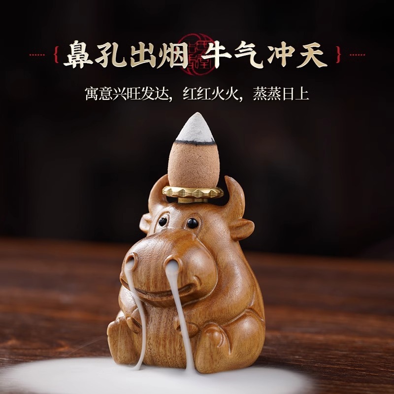 小紅書と同じスタイルの緑白檀彫刻かわいい香炉家庭用屋内威龍年逆流アロマセラピー炉