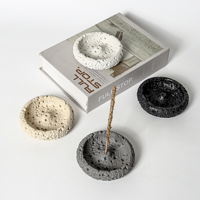 わびさび風セメント線香立て、ニッチ線香立てベース、多孔質線香ベース、高級質感線香立て