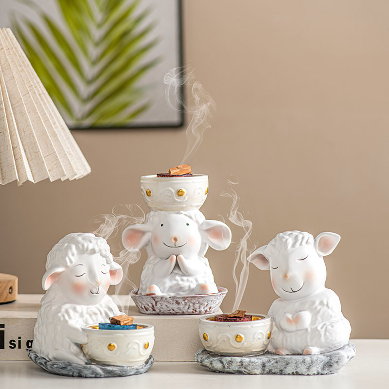 INS スタイルクリエイティブ線香ベースリビングルーム寝室わびさびスタイル香炉白檀沈香アロマセラピーベース装飾品
