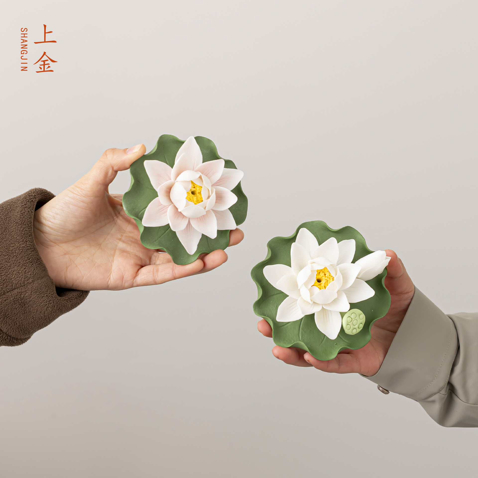 新中国式陶磁器香座家庭用供養線香托手作り蓮香薫炉禅意茶道香器置物