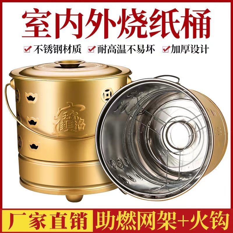 紙を焼く桶清明節墓地の紙を焼く桶屋外焼却炉ステンレス化宝桶焼き金元宝桶家庭用新