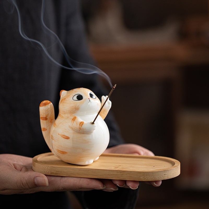 クリエイティブセラミックかわいい小さな猫の香線香家庭用屋内禅香炉茶室香立て