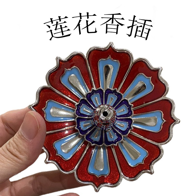 彩绘三层莲花香插立式香炉香座家用室内香薰炉景泰蓝檀香沉香香托