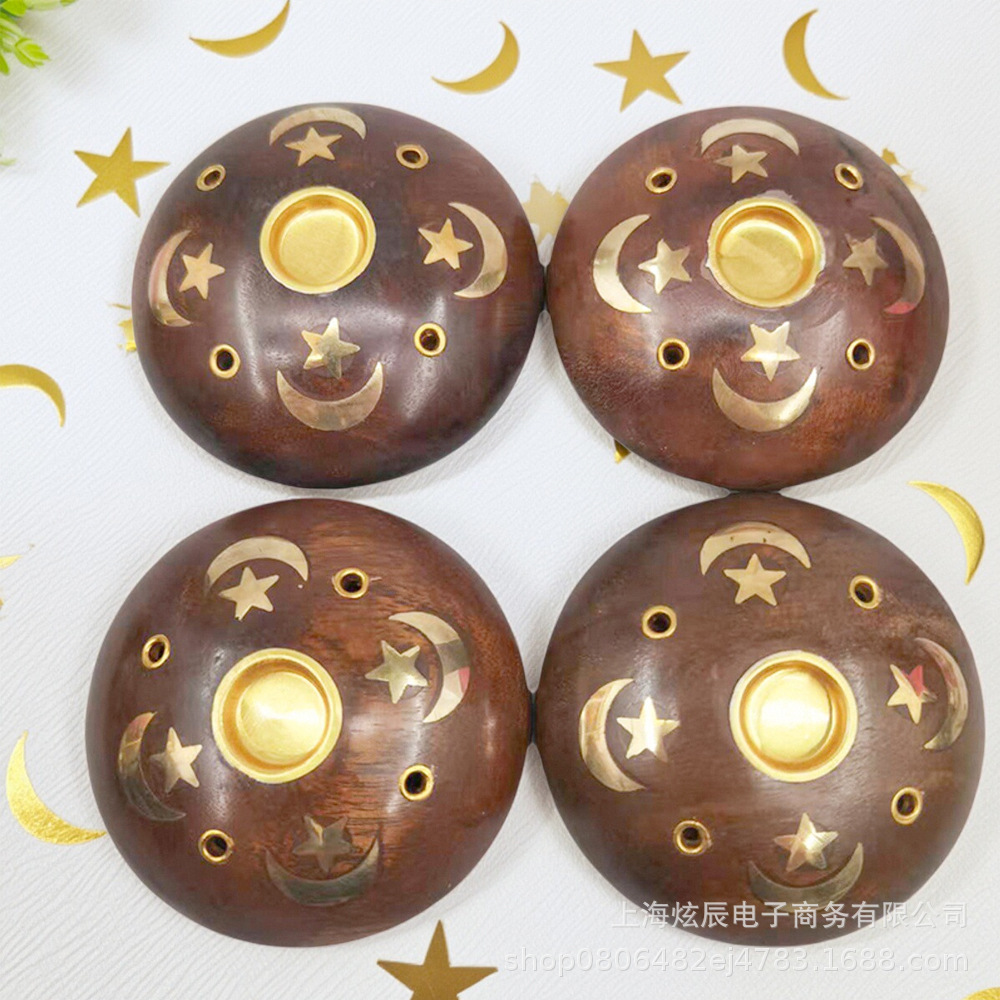 無垢材の星と月の香炉タワー香コーン香ホルダー手作りレトロヨーロッパスタイルのお香 4 穴香コーン装飾品