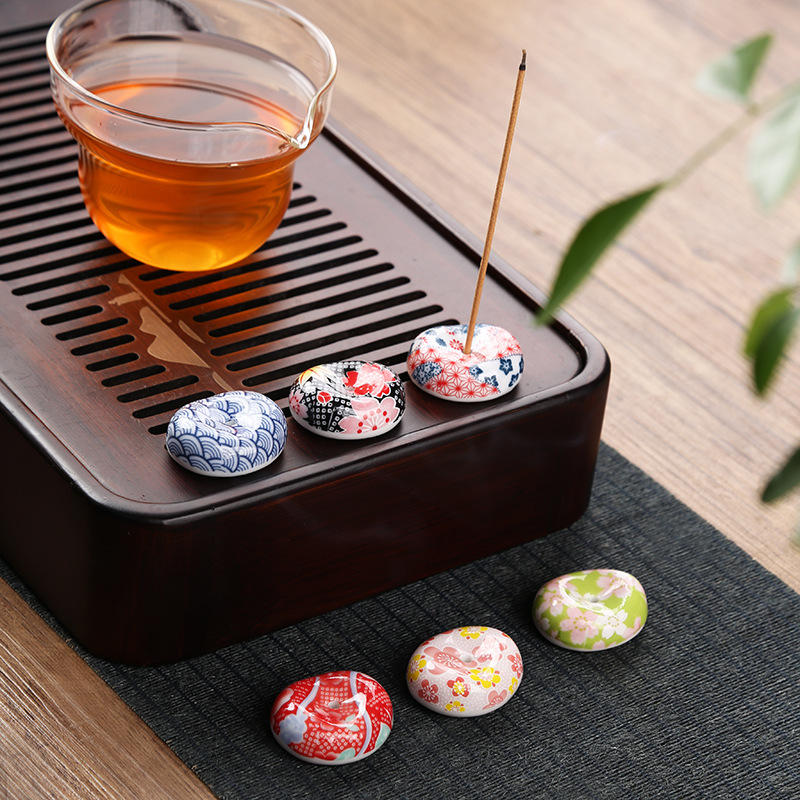 創意小衆陶磁器線香香香挿し多色円柱形香架香立線香香座スタンド香挿し