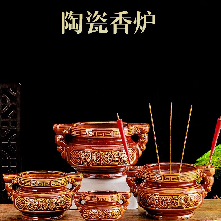 家庭用陶磁器三足香炉室内香薫碗屋外小香炉香挿古銅色双耳三脚大香炉