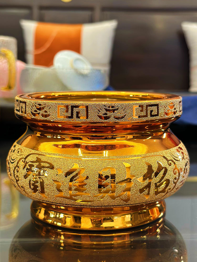 家庭用の砂金の小さい香炉は仏陶磁器の香碗の財神に香を挿して香を燃やします。