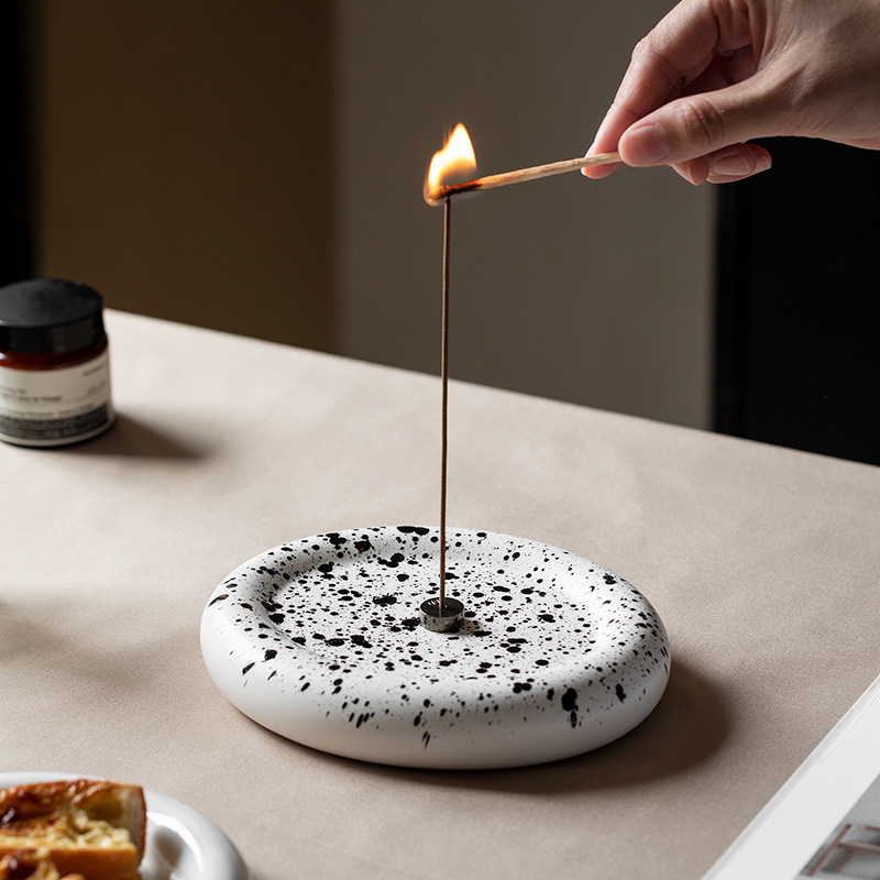 北欧ins風太った陶磁器香盤線香挿香座茶室客間家庭用香盤香托創意置物