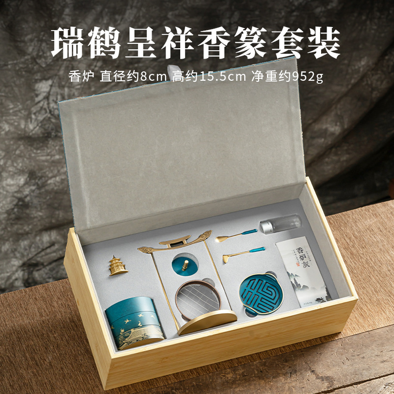 香道セット瑞鶴打香篆道具真鍮篆香粉家庭用臥香箱檀香薫香炉
