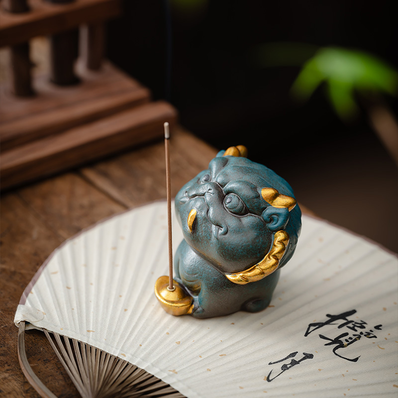 陶磁器招財萌龍線香挿し室内家庭用香炉香座龍年プレゼント薫香座デスクトップ小置物