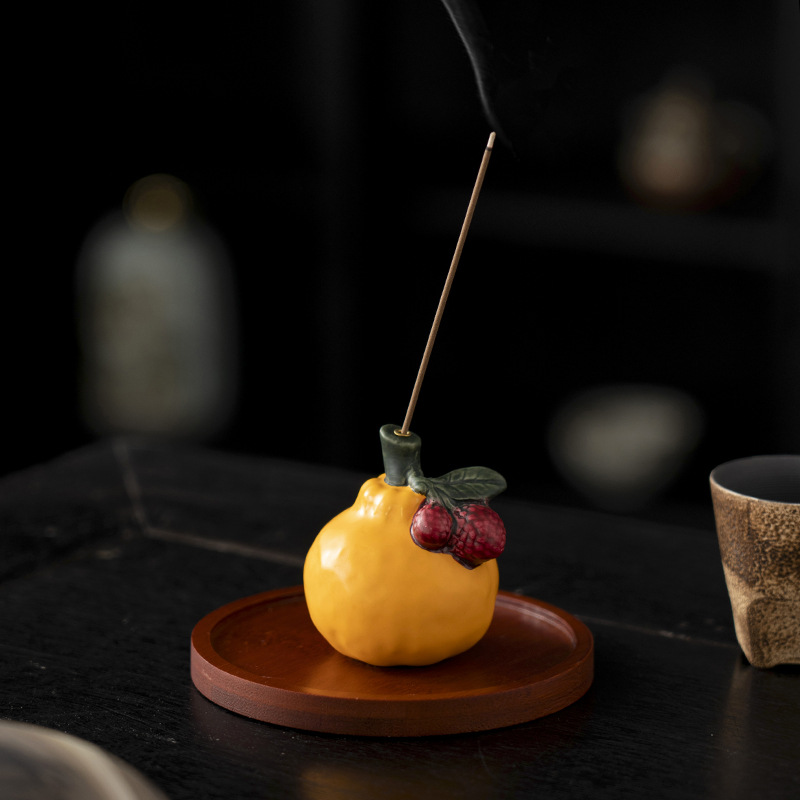 古風陶磁器醜橘線香炉立式ミニ香挿し携帯可愛い香座茶道檀香中国式薫香炉