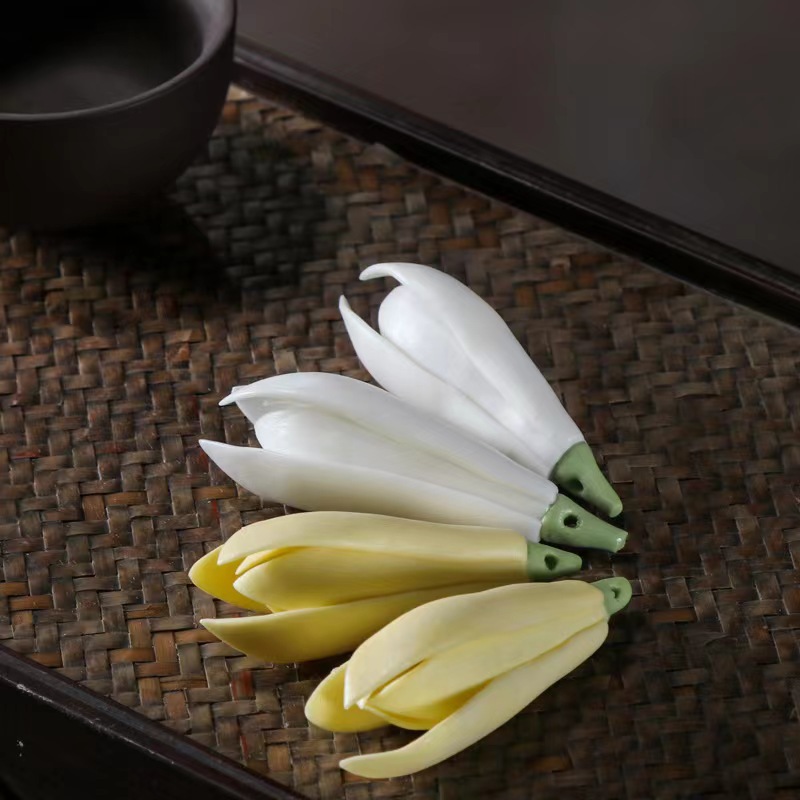 手で陶磁器の玉蘭をつまんで穴の小さい置物の茶室の茶道の装飾品のお茶を飾って家に飾ってペンダントの工場を飾ります。