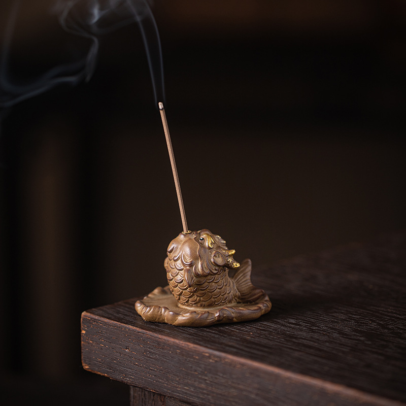招財魚龍陶磁器ミニ線香炉家庭用室内香挿香座禅意茶台デスクトップ香薫炉置物