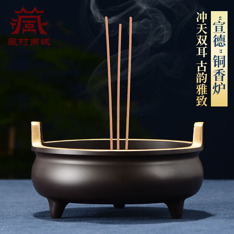双耳銅盤香炉家庭用焼香炉線香薫香炉茶道沈香檀香三足香炉置物